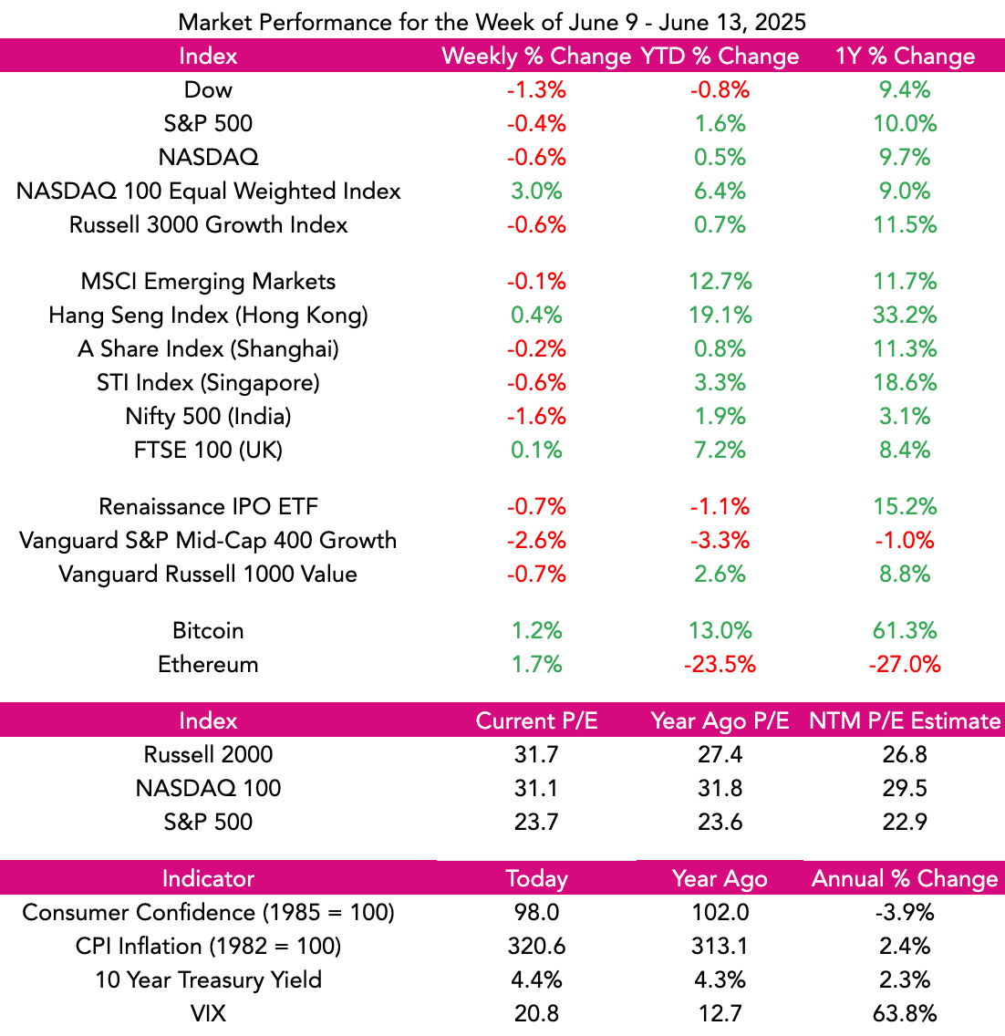 Stocks were contained by worries of an escalation of war between Israel in Iran with Israel decapitating a handful of Iranian military and nuclear leaders and Iran retaliating with drone strikes on Tel Aviv.